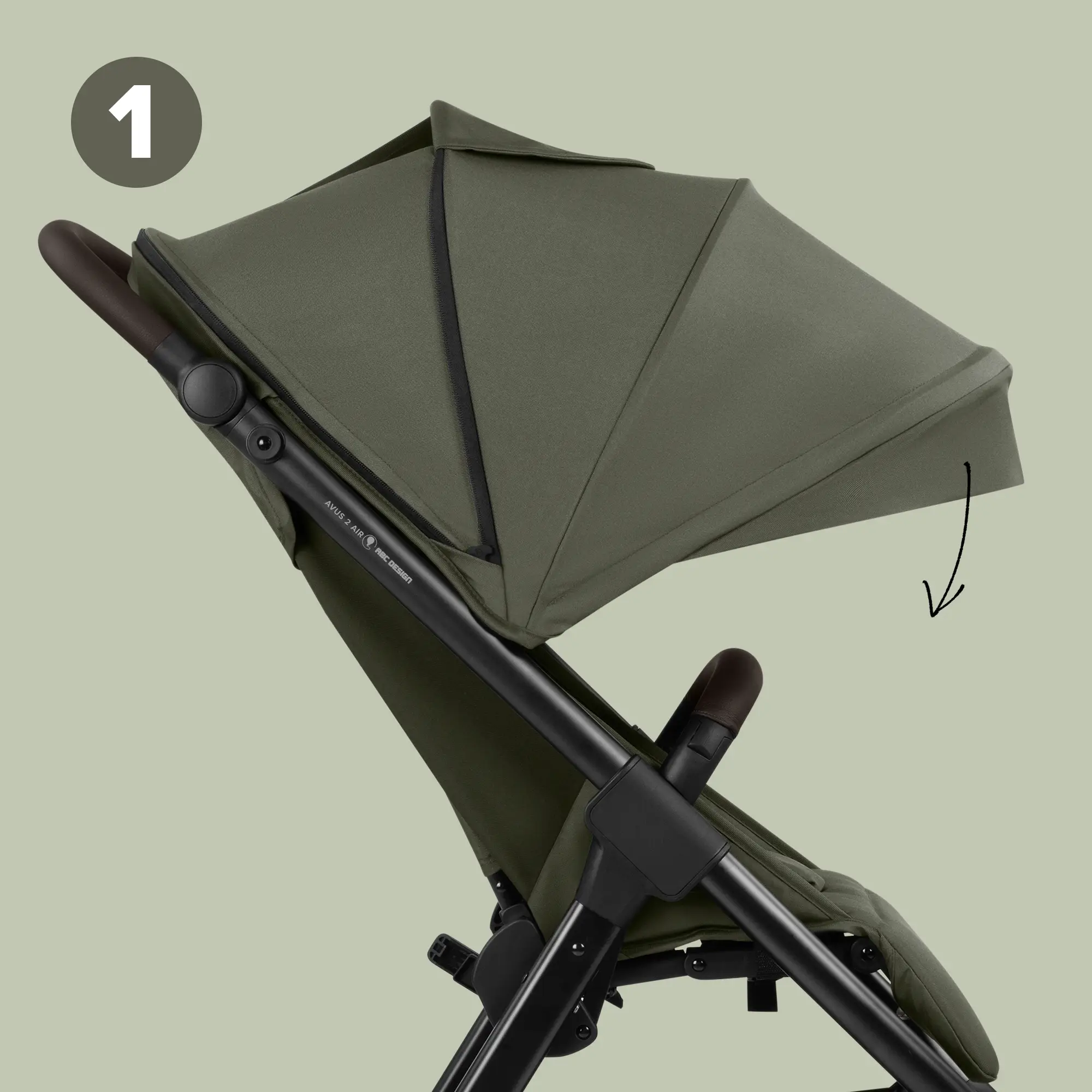 Model Avus 2 Air wyposażony jest w przedłużoną budkę przeciwsłoneczną. Budkę można nie tylko rozłożyć, lecz także skorzystać z dodatkowej osłony przeciwsłonecznej umieszczonej z przodu. W zależności od kąta padania promieni słonecznych można ją rozkładać lub składać. Szczególnie przy nisko położonym słońcu rozwiązanie to stanowi wyraźną korzyść dla Ciebie i Twojego dziecka.